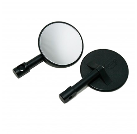 Ozdobne lusterko motocyklowe mocowane na końcu kierownicy. Okrągłe, wypukłe szkło. Obudowa w kolorze czarnym. Do zamocowania lusterka na kierownicy należy użyć śrub o długości 10 mm. Cena za komplet: 2 sztuki.