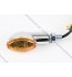 Komplet kierunkowskazów Mini CATEYE z bursztynową owalną soczewką. Chromowana obudowa. Wymiary soczewki: 45 mm x 25 mm, długość ramienia: 20 mm. Mocowanie za pomocą śruby M10. Żarówka halogenowa 12V/21W. Wyrób posiada homologację EU.