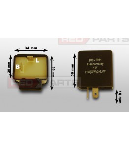 Jest to uniwersalny przerywacz dwupolowy. Wyposażony w gumowe mocowanie. Przeznaczony na instalację 12V. Jest w stanie wytrzymać obciążenie 2 x 21W (max 23W) + 3,4 W.