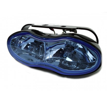 Światło długie i przeciwmgielne, czarna obudowa, niebieska soczewka, 2x H3 55W, posiada homologację EU na obie funkcje