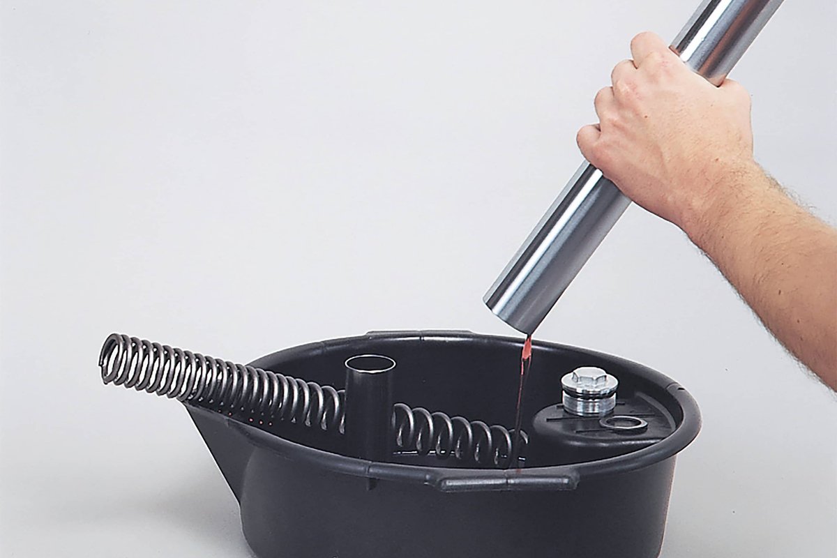 Wszytki stary olej możesz zlać do miski warsztatowej. Jeśli jest korek spustowy, należy go również wyjąć, odkręcić. Wielokrotne wciskanie i wyjmowanie rury stojącej lagi ułatwi wam i przyspiesza spuszczanie starego oleju z widelca.
