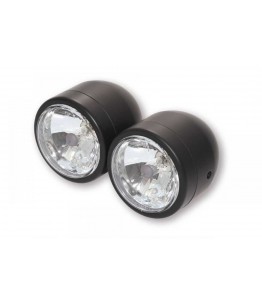 POdwójny reflektor, czarna matowa obudowa, światło długie i krótkie, żarówki 1x H4 i 1x H7