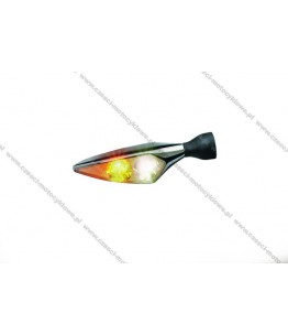 Kierunkowskaz Micro Rhombus PL w chromowanej obudowie. Używany jako przedni prawy kierunkowskaz, pełni również funkcję światła pozycyjnego. Wyrób posiada homologację EU na przód. Cena za sztukę.